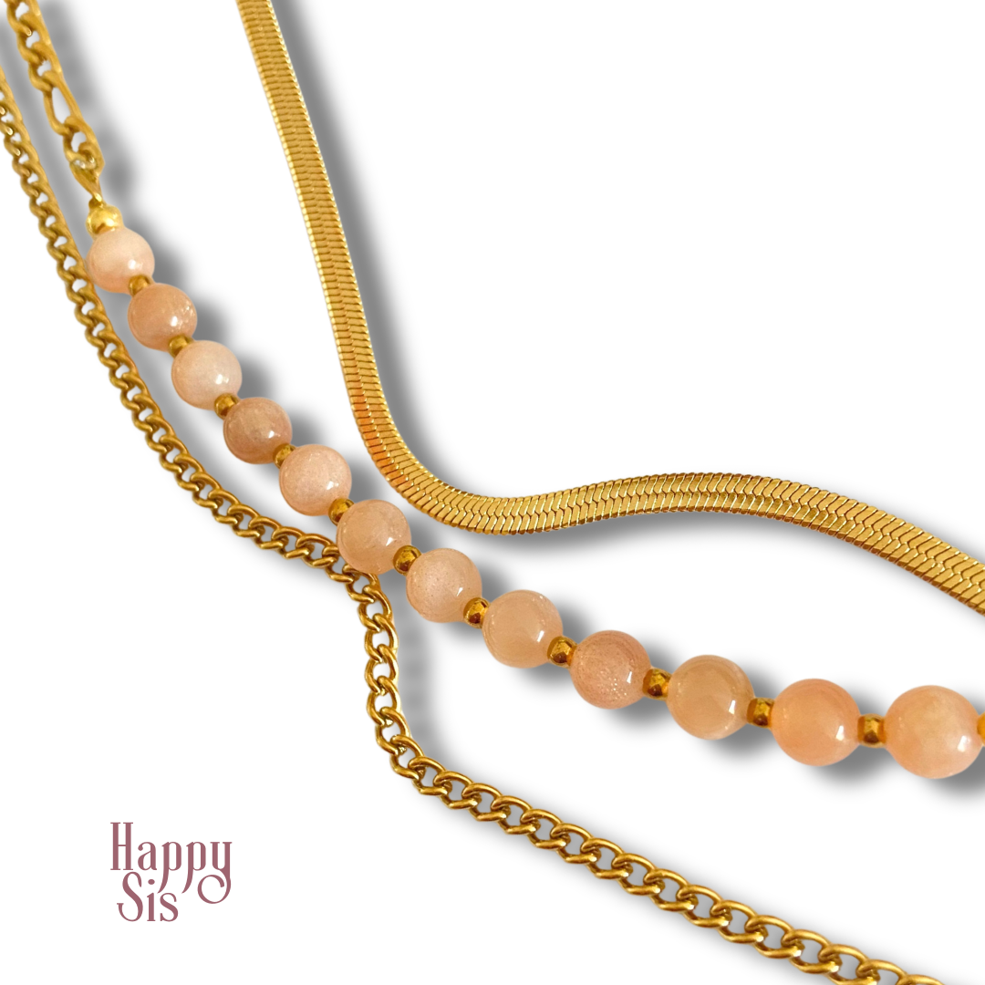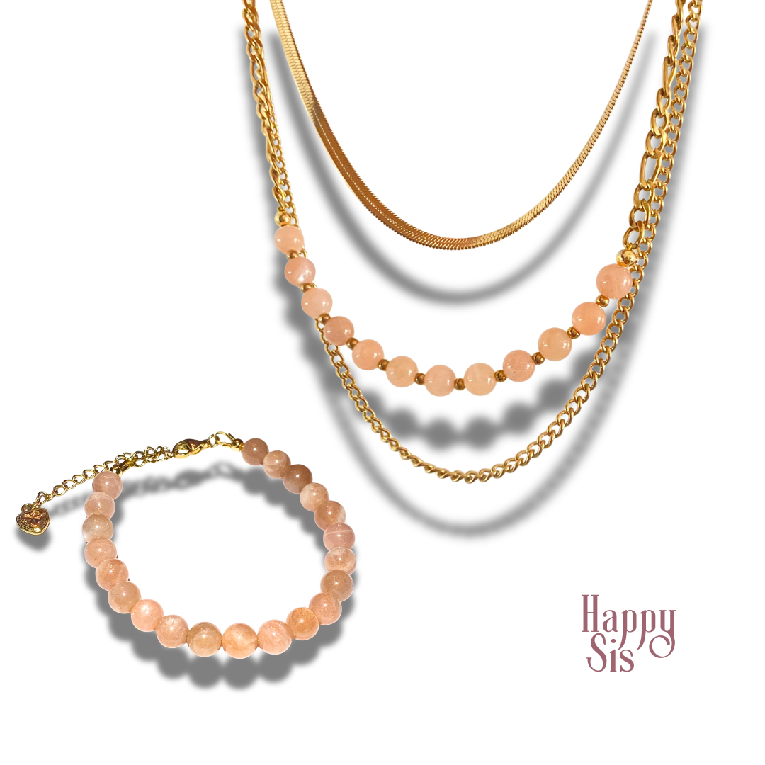 Perzik Maansteen – Complete Set | Vrouwelijkheid en Intuïtie is dé sieradenset voor vrouwen die hun zachte kracht willen omarmen en hun intuïtie willen versterken. Deze 4-delige set met stainless steel 18k gold plated kettingen en een bijpassende perzik maansteen armband staat symbool voor zachtheid, balans en nieuwe beginmomenten.
